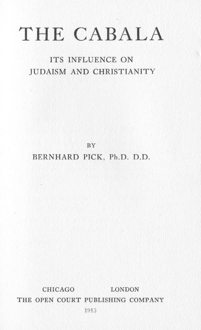 The Cabala, by Bernhard Pick, [1913], at sacred-texts.com