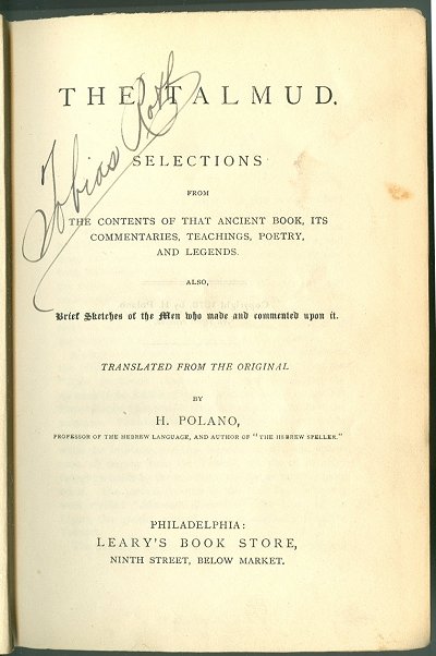 The Talmud: Selections, by H. Polano, [1876], at sacred-texts.com