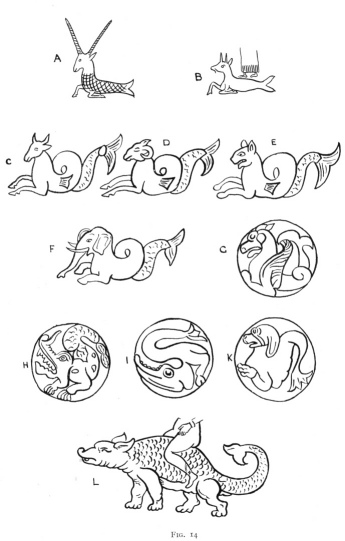 88:1 For information concerning Ea's "Goat-Fish," which can truly be called the "Father of Dragons," as well as the prototype of the Indian makara, the mermaid, the "sea-serpent," the "dolphin of Aphrodite," and of most composite sea-monsters, see W. H. Ward's "Seal Cylinders of Western Asia," pp. 382 et seq. and 399 et seq.; and especially the detailed reports in de Morgan's Mémoires (Délégation en Perse).
