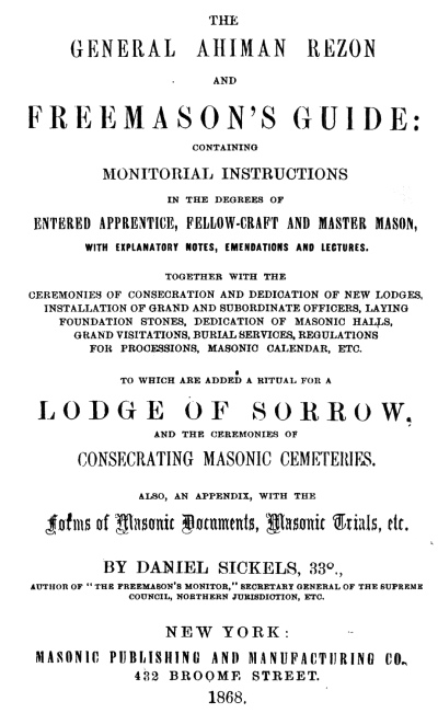 General Ahiman Rezon, by Daniel Sickels, [1868], at sacred-texts.com