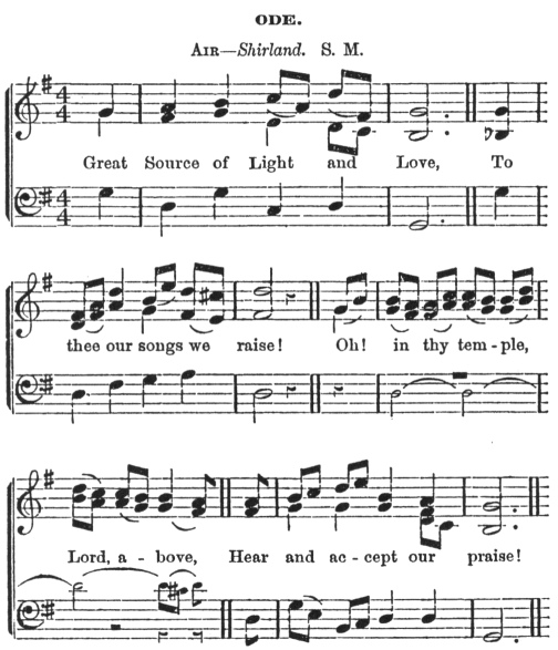 Great Architect of the Universe! Maker and Ruler of all Worlds! Deign, from thy celestial temple, from realms of light and glory, to bless us in all the purposes of our present assembly! We humbly invoke thee to give us at this, and at all times, wisdom in all our doings, strength of mind in all our difficulties, and the beauty of harmony in all our communications! Permit us, O thou Author of Light and Life, great Source of Love and Happiness, to erect this Lodge, and now solemnly to consecrate it to the honor of thy glory!