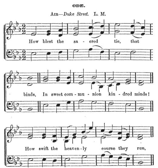 [paragraph continues] And PROPERTIUS speaks, at a later day, of the ignorance of the country people, who, at the theatres, destroyed the general harmony, by their awkward attempts to join in the modulated applauses of the more skillful citizens.