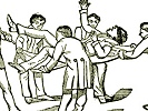 On which they rushed forward, seized, bound and carried them up to the Temple of King Solomon.