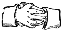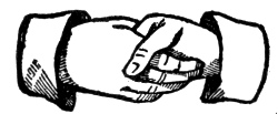 Strong Grip of a Master Mason or Lion's Paw.—Grasp each other's right hands very firmly, the spaces between the thumb and first finger being interlocked and the tops of the fingers being pressed hard against each other's wrist where it joins the hand, the fingers of each being somewhat spread.