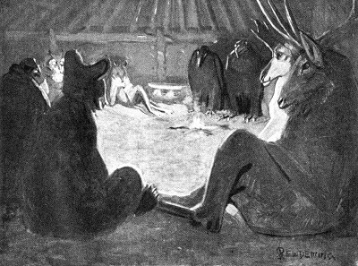 Tol'-le-loo the Mouse playing his flute and putting the Valley People to sleep so he can steal the Fire