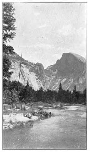 traveling. This figure was interpreted to be the picture of the great lost Chieftain, indicating that he had gone to the "happy hunting grounds" of his ancestors, and it is looked upon with great veneration and awe by the few Indians still living in Yosemite.