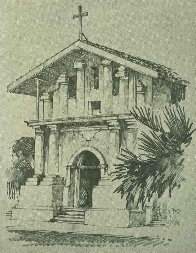 OUNDED in 1776, the year of American Independence, this Mission, still standing in the heart of the great City of San Francisco was a familiar landmark when the great gold rush of the "Days of ‘49" was in full swing. Almost since its establishment it has been popularly known as "Mission Dolores" probably for the reason that it was founded on the church calendar day of Our Mother of Sorrows. It escaped untouched, as though by a miracle, the great fire of 1906.