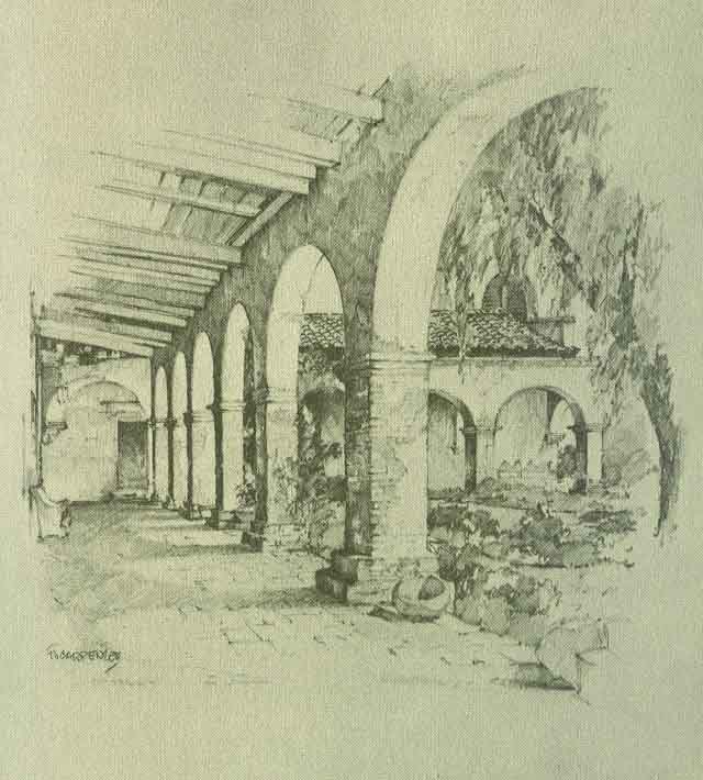 HE seventh link in the great chain, was founded in 1776 and became in its time a mighty establishment. An eminent architect, the late Arthur B. Benton, who made a careful survey of San Juan Capistrano with a view to its possible full restoration estimated that the work could not be done at a less cost than $200,000. It is here that the only remaining church in which Father Serra celebrated Mass is to be seen, and which has been completely restored by Father St. John O'Sullivan. But the great main church which was wrecked by the earthquake of 1812 still remains in ruins.