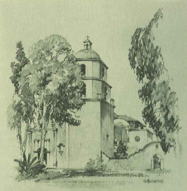 HIS was the eighteenth Mission and was founded in 1798. The Franciscan Fathers have returned to it and have done a great deal to restore it to its original proportions. It was builded entirely of adobe and, according to Buell, stands preeminent architecturally. It is to be seen four miles inland from the town of Oceanside as the traveler enters San Diego County from the North. Many interesting relics of the early Mission days are on exhibition in the museum. In the patio of San Luis Rey the original pepper tree of California still stands green and growing.