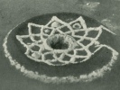 The singing without dancing goes on for a certain length of time. Then the chief takes a whirling-board, or bull-roarer, mumlapish. 44 Instead of telling them to stop singing, he whirls the board three times. The images are then again lifted up, and carried back in procession to the more distant place. The dancers now paint themselves and put on the feather head-dresses. The whirling-board is swung again as a signal, and they come again carrying the images and marching around the sacred enclosure, bringing the turtle-shell rattle. 45 In the sacred enclosure they dance to a long series of songs.