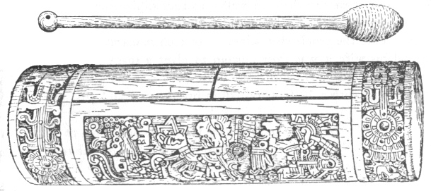 The tunkul or Mexican teponaztli; beaten with a rubber-tipped stick it can be heard for five or six miles.