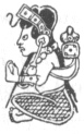 56:* The text figures are from the Dresden codex, and probably show the goddess Ixchel, in the first as goddess of childbirth, or Lucina; in the second she bears the signs of 'new day,' spring, renewal time. The wife of Itzamná, in the Maya pantheon she corresponded to Isis.