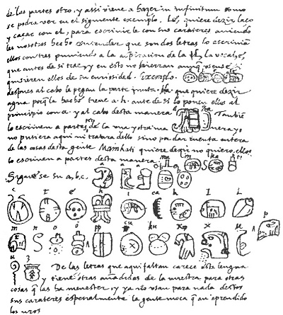 These people also used certain characters or letters, with which they wrote in their books about the antiquities and their sciences; with these, and with figures, and certain signs in the figures, they understood their matters, made them known, and taught them. We found a great number of books in these letters, and since they contained nothing but superstitions and falsehoods of the devil we burned them all, which they took most grievously, and which gave them great pain.