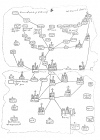 By the aid of Cura Carrillo (later Bishop), they with much trouble got a translation, of which the essential parts are printed by Stephens; and also an engraving of the accompanying map. These papers he tells us were in a thick volume, of which the 1557 document was on the 157th page, and the other a few pages further on. To make our own story short, however, these papers are certainly not the identical leaves in our volume, but equally certainly our pages are contemporary transcripts. The map is the same, with Maní in the center, and Uxmal showing, just as given by Stephens. Practically the same roads lead out from Maní in each, but a number of outlying town names are omitted in our copy, while several personal names are inserted. Also a comparison of the text of the 1557 document here with Carrillo's translation shows that the originals must have been substantially but not identically the same. Our copy omits mention of the judge Manrique and the visit to Uxmal, but also it is considerably longer, listing various towns not given in Stephens, ending with the final statement that after all the proper inspections and agreements of the various almehenob, the ubatabil cahob or town governors, this certified 'transcript' had been made, on August 15, 1557, that all might see and know it as true.