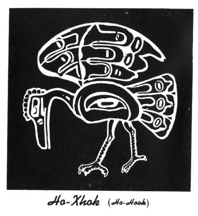 For years the writer has received inquiries regarding the totemic designs of poles and basketry, and, in and effort to satisfy them, he traced the Thunder Bird Legend. First published in a stamp-size booklet that has had a circulation of 275,000 copies, it so excited the imagination of the tourists invading the Northwest that the Indians could not keep up with the demand for totemic objects.