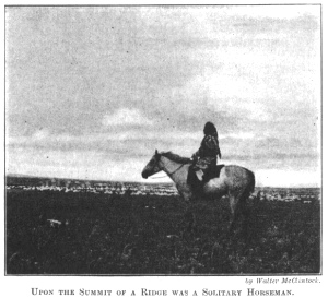 UPON THE SUMMIT OF A RIDGE WAS A SOLITARY HORSEMAN.