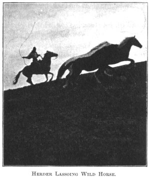 HERDER LASSOING WILD HORSE.