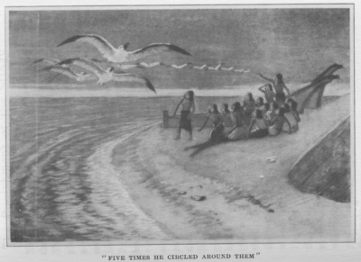 AT Sea Side lived many peoplea big village. Their houses were on the bank, and, below, the wide beach sloped down to the salt water. Under the bank the canoes rested on the beach above high-water mark. Beyond was the sea.