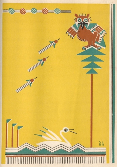 When April comes to stir the forests and fields into new life after the winter months have gone, the cottonwood tree spreads her arms and shakes her head and sends her white feathers floating down in the air. The cottonwood does this every year because she remembers something that happened long ago before the owl became a wicked bird who eats others.