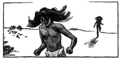 The day came, and the starting-point was surrounded by all the people of the two villages, dressed in their best. On each side were huge piles of ornaments and dresses, stores of grain, and all the other property of the people. The runner for the yellow village was a tall, sinewy athlete, strong in his early manhood; and when the Antelope Boy appeared for the other side, the witches set up a howl of derision, and began to strike their rivals and jeer at them, saying, "Poch! We might as well begin to kill you now! What can that óo-deh (little thing) do?"