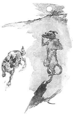The Coyote paid no attention to her, but kept walking with his hand to his mouth, groaning, "Mm-m-páh! Mm-m-páh!"