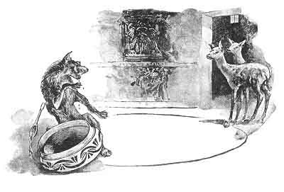 ''THE FAWNS APPEARED SUDDENLY, AND AT SIGHT OF THEM THE WOLF DROPPED THE SPOONFUL OF SOUP.''