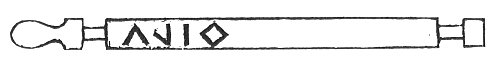 length of two barleycorns of the end, round, and the thickness of a nail or cabbage leaf, deeper than the surface of the tree; and trim both ends neatly and smartly, that they may be beautiful to look at, and easy under the finger to turn. Then the stave will be ready, which is also called ebill, and in the plural ebillion, and its appearance will be as here seen;--