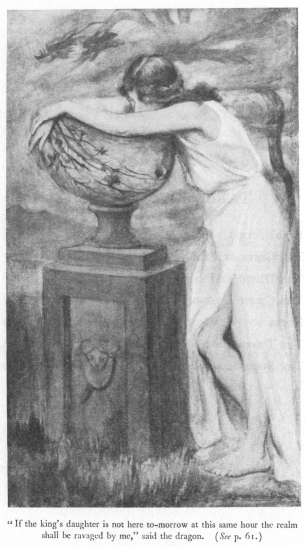 "There was once a great city that depended for its water-supply upon a fountain without the walls. A great dragon, possessed and moved by Satan himself, took possession of the fountain and refused to allow water to be taken unless, whenever people came to the spring, a youth or maiden was given to him to devour. The people tried again and again to destroy the monster, but though the flower of the city cheerfully went forth against it, its breath was so pestilential that
