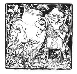 Tom was taken so by surprise with this that he was just on the very point of turning round when he recollected himself; so, afraid that the like might happen again, he made a grab at the Lepracaun, and caught him up in his hand; but in his hurry he overset the pitcher, and spilt all the beer, so that he could not get a taste of it to tell what sort it was. He then swore that he would kill him if he did not show him where his money was. Tom looked so wicked and so bloody-minded that the little man was quite frightened; so says he, "Come along with me a couple of fields off, and I'll show you a crock of gold."