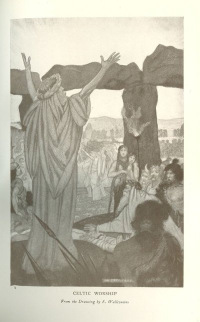 Like other nations, too, whether Aryan or non-Aryan, the Celts had, besides their mythology, a religion. It is not enough to tell tales of shadowy gods; they must be made visible by sculpture, housed in groves or temples, served with ritual, and propitiated with sacrifices, if one is to hope for their favours. Every cult must have its priests living by the altar.