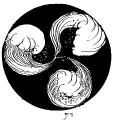 Then Mananaun wrapped Lugh in his cloak and stepped into his boat, the Ocean-Sweeper, and without oar or sail they journeyed over the sea till they crossed the waters at the edge of the world and came to the country of Mananaun--a beautiful country shining with the colours of the dawn.
