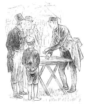 Then you would see gentlemen with halfpenny roulette-tables; and, again, here were a pair who came forward disinterestedly with a table and a pack of cards, and began playing against each other for ten shillings a game, betting crowns as freely as possible.