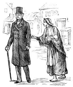 During the cattle-fair the celebrated town of Ballinasloe is thronged with farmers from all parts of the kingdom--the cattle being picturesquely exhibited in the park of the noble proprietor of the town, Lord Clancarty. As it was not fair-time the town did not seem particularly busy, nor was there much to remark in it, except a church, and a magnificent lunatic asylum, that lies outside the town on the Dublin road, and is as handsome and stately as a palace. I think the beggars were more plenteous and more loathsome here than almost anywhere. To one hideous wretch I was obliged to give money to go away, which he did for a moment, only to obtrude his horrible face directly afterwards half eaten away with disease. "A penny for the sake of poor little Mery," said another woman, who had a baby sleeping on her withered breast; and how can any one who has a little Mery at home resist such an appeal? "Pity the poor blind man!" roared a respectably dressed grenadier of a fellow. I told him to go to the gentleman with a red neck-cloth and fur cap (a young buck from Trinity College)--to whom the blind man with much simplicity immediately stepped over; and as for the rest of the beggars, what pen or pencil could describe their hideous leering flattery, their cringing, swindling humour!