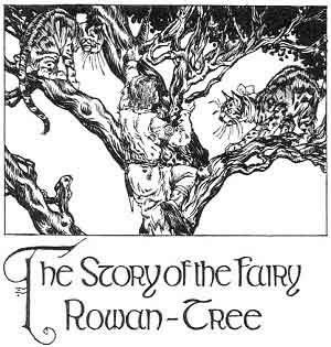 The history of the Fairy Rowan Tree (said the King's Councillor) begins with Aine', the daughter of Mananaun who is Lord of the Sea. Curoi, the King of the Munster Fairies loved Aine' and sought her in marriage. But the desire of the girl's heart was set upon Fergus who was a mortal, and one of the Fianna of Ireland. Now when Mananaun MacLir heard Curoi's proposals and learned how his daughter's heart was inclined, he said, "Let the matter be settled in this way: we will call a hurling-match between the Fairies of Munster and the Fianna of Ireland with Curoi to captain one side and Fergus to captain the other, and if the Fairies win, Aine' will marry Curoi and if the Fianna have the victory she will have my leave to marry this mortal Fergus."