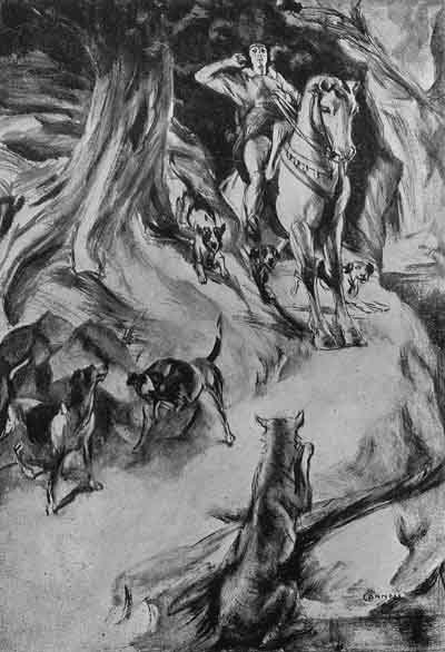 Some months later the King was hunting in the great forest near the missing baron's castle. The hounds, unleashed, came upon the scent of a wolf, and pressed the animal hard. For many hours they pursued him, and when about to seize him, Bisclaveret--for it was he--turned with such a human gesture of despair to the King, who had ridden hard upon his track, that the royal huntsman was moved to pity. To the King's surprise the were-wolf placed its paws together as if in supplication, and its great jaws moved as if in speech.