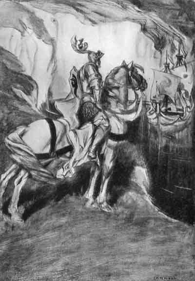 In due time the cavalcade came to the seashore and took ship for the realm of Logres. Near Exeter, in