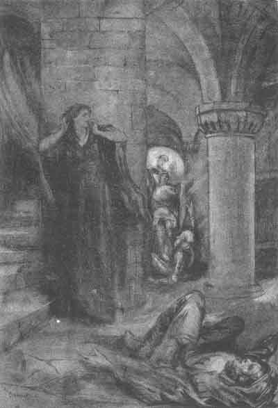 "Ah, slay him not, my lord!" she cried in anguish, for she had grown to associate the bird's sweet song with the sweeter converse of her lover--to regard it as in a measure an accompaniment to his love-words. For answer her husband seized the unhappy bird by the neck and wrung its head off. Then he cast the little body into the lap of the dame, soiling her with its blood, and departed in high anger.