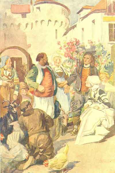 hair falls loosely, being exactly in almost every detail like that which one associates with the women of Italy. The costume of the man from St Pol is, like that of the Granville women, soberer than most others of Brittany. Save for his buttons, the buckle on his hat, and the clasps of white metal fastening his leather shoes, his dress, including spencer, waistcoat, trousers, and stockings, is of black, and his hair is worn falling on his shoulders, while he rarely carries the pen-bas--an indication, perhaps, of his rather meditative, pious temperament.