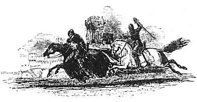 The Countess bade them bring out a beautiful black steed 24a, upon which was a beechen saddle, and a suit of armour, for man and horse. And Owain armed himself, and mounted the horse, and went forth, attended by two pages completely equipped, with horses and arms. And when they came near to the Earl's army, they could see neither its extent nor its extremity. And Owain asked the pages in which troop the Earl was. "In yonder troop," said they, "in which are four yellow standards. Two of them are before, and two behind him." "Now," said Owain, "do you return and await me near the portal of the Castle." So they returned, and Owain pressed forward until he met the Earl. And Owain drew him completely out of his saddle, and turned his horse's head towards the Castle, and though it was with difficulty, he brought the Earl to the portal, where the pages awaited him. And in they came. And Owain presented the Earl as a gift to the Countess. And said to her, "Behold a requital to thee for thy blessed balsam."
