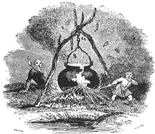 Then she began to boil the cauldron, which from the beginning of its boiling might not cease to boil for a year and a day, until three blessed drops were obtained of the grace of Inspiration.