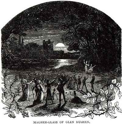 following night the fairy king and queen would hold a grand court and feast in Glen Rushen, in the southern part of the island, near Ballasalla, in honour of RE-HOLLYS-VOOAR-YN-ONYR, the royal festival of the harvest moon, and that every elfin in Ellan Vannin would have to attend. He