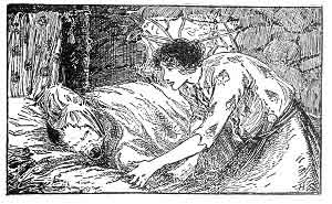 "Nonsense!" said Duncan. "I'll tell you a much better plan; it's the very chance for you. Just you creep in quietly and wake her with a good sound kiss