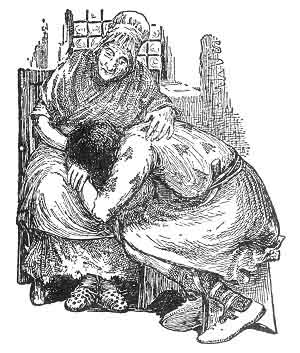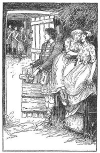 "Quick!" said Duncan. "Get in through the bole in the roof; sit down both of you on the big aschet on the board; garnish your heads with kale, shut your eyes, and don't move or say a word, and all will be well."