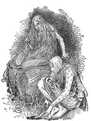 hag bade him, and as the moon rose over the crags of Braeriach, he cast the broth on the ground before her, bidding her come the next day at even to be his witness when he should call.