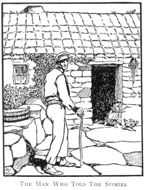 'Pat was a great rogue,' said the old man. 'Maybe you remember the bits of horns he had like handles on the end of his sticks? Well, one day there was a priest over and he said to Pat--"Is it the devil's horns you have on your sticks, Pat?" "I don't rightly know" said Pat, "but if it is, it's the devil's milk you've been drinking, since you've been able to drink, and the devil's flesh you've been eating and the devil's butter you've been putting on your bread, for I've seen the like of them horns on every old cow through the country." '