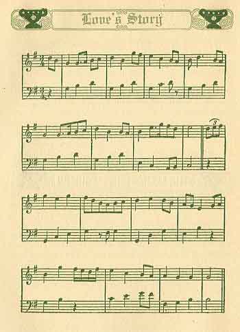 "She is devoted these days because a queer twist of a lad is devoted, and hours she reads the prayers he is sending on tablets. It is a game of young years and is on the love path. She grows tall and nearing time to wed."