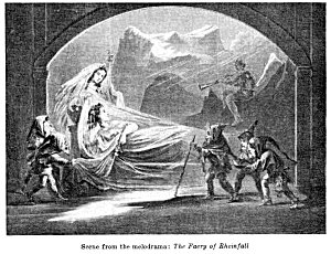 The noises and eruptions of Aetna and Stromboli were, in ancient times, ascribed to Typhon or Vulcan, and at this day the popular belief connects them with the infernal regions. The sounds resembling the clanking of chains, hammering of iron, and blowing of bellows, once to be heard in the island of Barrie, were made by the fiends whom Merlin had set to work to frame the wail of brass to surround Caermarthen. [b] The marks which natural causes have impressed on the solid and unyielding granite rock were produced, according to the popular creed, by the contact of the hero, the saint, or the god: masses of stone, resembling domestic implements in form, were the toys, or the corresponding implements of the heroes and giants of old. Grecian imagination ascribed to the galaxy or milky way an origin in the teeming breast of the queen of heaven: marks appeared in the petals of flowers on the occasion of a youth's or a hero's untimely death: the rose derived its present hue from the blood of Venus, as she hurried barefoot through the woods and lawns; while the professors of Islam, less fancifully, refer the origin of this flower to the moisture that exuded from the sacred person of their prophet. Under a purer form of religion, the cruciform stripes which mark the back and shoulders of the patient ass first appeared, according to the popular tradition, when the Son of God condescended to enter the Holy City, mounted on that animal; and a fish only to be found in the sea [the Haddock] stills bears the impress of the finger and thumb of the apostle, who drew him out of the waters of Lake Tiberias to take the tribute-money that lay in his mouth. The repetition of the voice among the hills is, in Norway and Sweden, ascribed to the Dwarfs mocking the human speaker, while the more elegant fancy of Greece gave birth to Echo, a nymph who pined for love, and who still fondly repeats the accents that she hears. The magic scenery occasionally presented on the waters of the Straits of Messina is produced by the power of the Fata Morgana; the gossamers that float through the haze of an autumnal morning, are woven, by the ingenious dwarfs; the verdant circlets in the mead are traced beneath the light steps of the dancing elves; and St. Cuthbert forges and fashions the beads that bear his name, and lie scattered along the shore of Lindisfarne. [c]