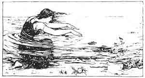 The giant's daughter went out next morning with the lad's breakfast, and found him in a terrible state, for always as he cleaned out a bit, it just fell in again. The giant's daughter said she would help him, and she cried all the beasts in the field, and all the fowls in the air, and in a minute they all came, and carried away everything that was in the stable and made it all clean before the giant came home. He said: 'Shame on the wit that helped you; but I have a worse job for you tomorrow.' Then he said to Nix Nought Nothing: 'There is a lake seven miles long, and seven miles deep, and seven miles broad, and you must drain it tomorrow by nightfall, or else I'll have you for my supper.' Nix Nought Nothing began early next morning and tried to lave the water with his pail, but the lake was never getting any less, and he didn't know what to do; but the giant's daughter called on all the fish in the sea to come and drink the water, and very soon they drank it dry. When the giant saw the work done he was in a rage, and said: 'I've a worse job for you tomorrow; there is a tree, seven miles high, and no branch on it, till you get to the top, and there is a nest with seven eggs in it, and you must bring down all the eggs without breaking one, or else I'll have you for my supper.' At first the giant's daughter did not know how to help Nix Nought Nothing; but she cut off first her fingers and then her toes, and made steps of them, and he climb the tree and got all the eggs safe till he came just to the bottom, and then one was broken. So they determined to run away together, and after the giant's daughter had gone back to her room and got her magic flask, they set out together as fast as they could run. And they hadn't got but three fields away when they looked back and saw the giant walking along at full speed after them. 'Quick! quick!' called out the giant's daughter, 'take my comb from my hair and throw it down.' Nix Nought Nothing took her comb from her hair and threw it down, and out of every one of its prongs there sprung up a fine thick briar in the way of the giant. You may be sure it took him a long time to work his way through the briar bush, and by the time he was well through, Nix Nought Nothing and his sweetheart had run far, far away from him. But he soon came along after them, and was just like to catch 'em up when the giant's daughter called out to Nix Nought Nothing, 'Take my hair dagger and throw it down, quick, quick!' So Nix Nought Nothing threw down the hair dagger and out of it grew as quick as lightning a thick hedge of sharp razors placed cuss-cross. The giant had to tread very cautiously to get through all this and meanwhile they both ran hard, and on, and on, and on, till they were nearly out of sight. But at last the giant was through, and it wasn't 'long before he was like to catch them up. But just as he was stretching out his hand to catch Nix Nought Nothing his daughter took out her magic flask and dashed it on the ground. And as it broke, out of it welled a big, big wave that grew, and that grew, till it reached the giant's waist and then his neck, and when it got to his head, he was drowned dead, and dead, and dead indeed.