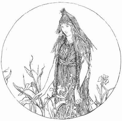 Well, she went away on and on till she came to a fen, and there she gathered a lot of rushes and made them into a kind of a sort of a cloak with a hood, to cover her from head to foot, and to hide her fine clothes. And then she went on and on till she came to a great house.