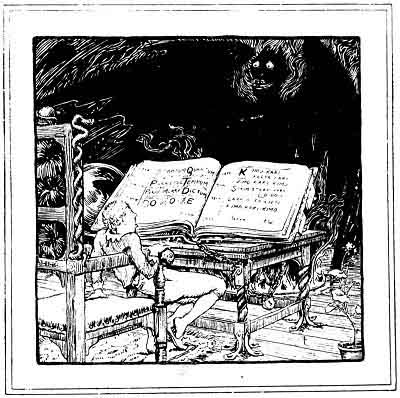 'I can do nothing,' he said, 'as I don't know the right words to utter, and they are locked up in yon book.' He looked round, and, see! the book was unfastened; the master had forgotten to lock it before he went out. The boy rushed to it and unclosed the volume. It was written with red and black ink, and much of it he could not understand; but he put his finger on a line and spelled it through.